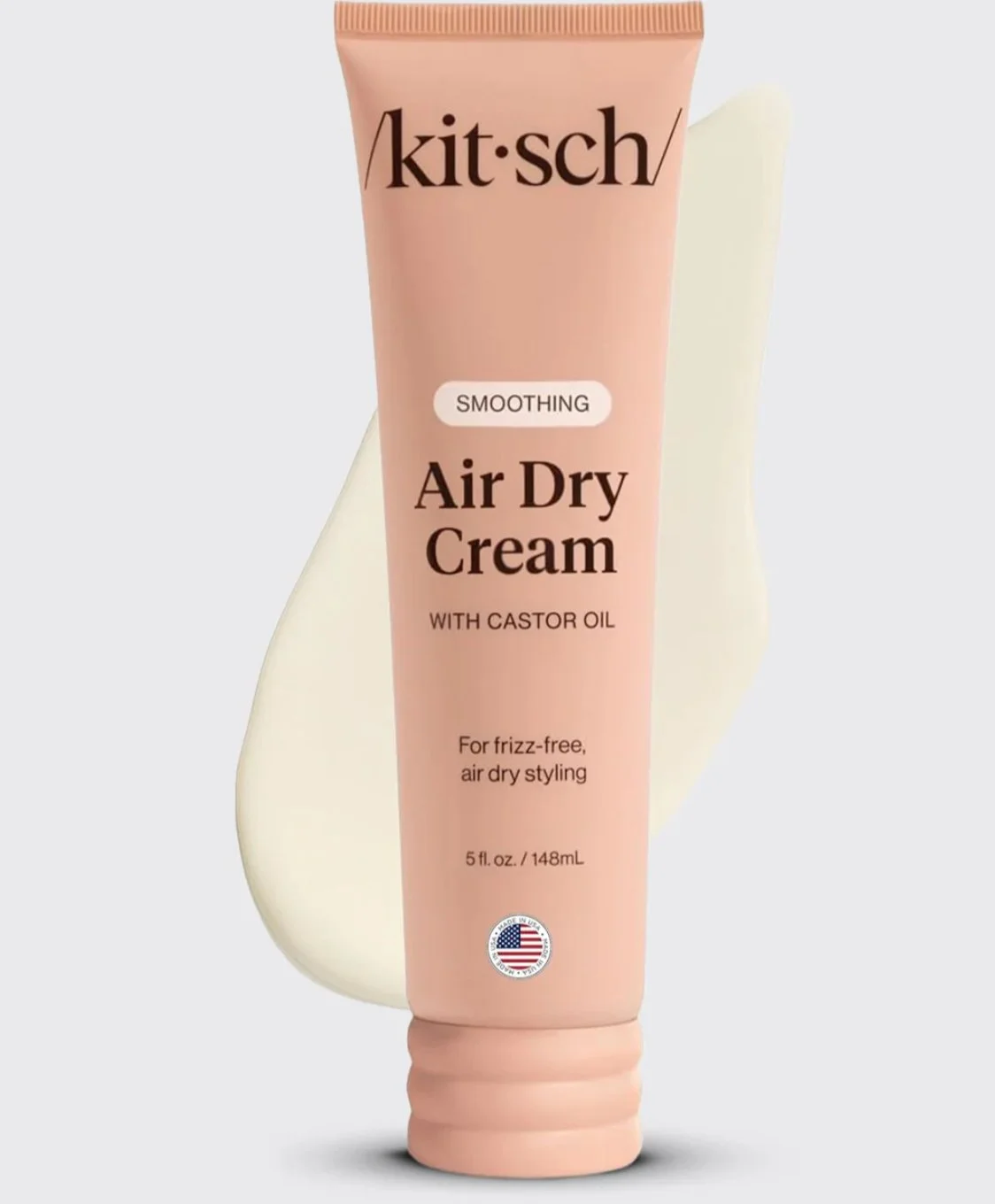 An air dry so good, it looks straight from the salon. Kitsch Smoothing Air Dry Cream enhances the appearance of natural texture and locks down frizz for up to 24 hours* with a weightless blend of castor oil, squalane, and coconut oil.