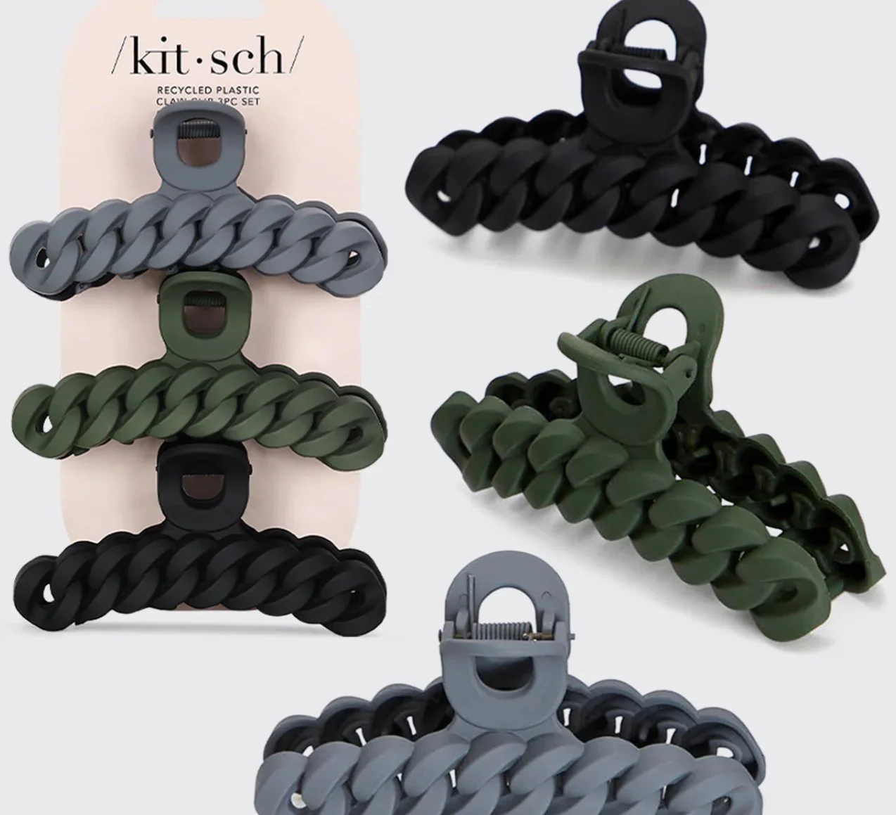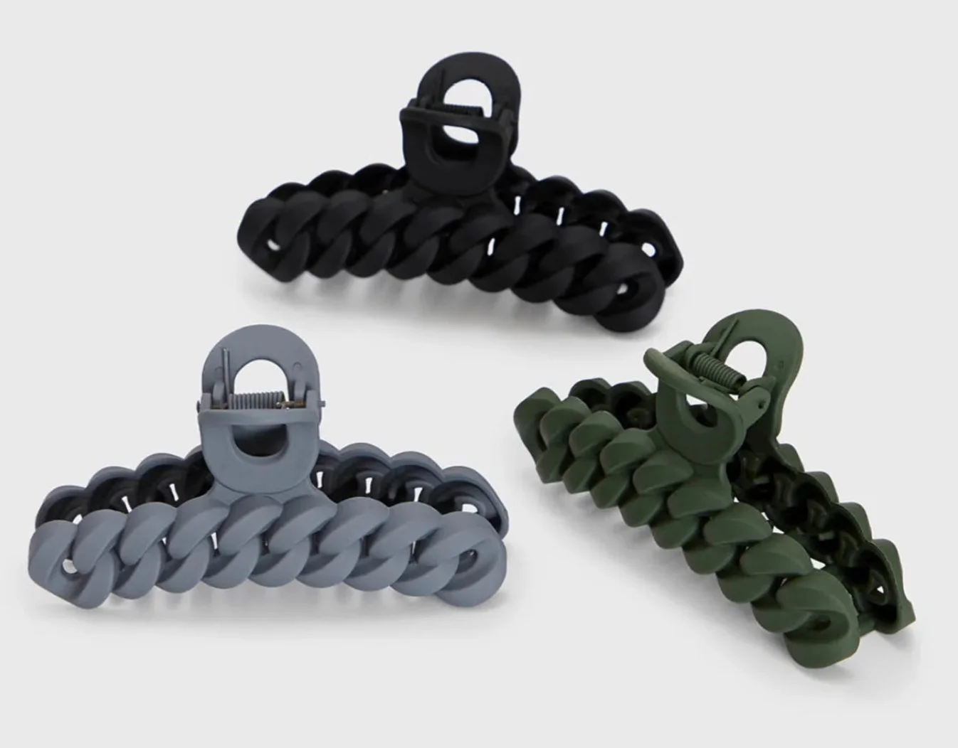 Step out looking effortlessly stylish with these sustainable chain claw clips. Our elevated take on the classic hair clip lets you twist your hair up with zero effort while making an on-trend statement. Crafted with recycled materials, these eco-friendly clips let you feel good about looking good. Choose from two sets of versatile neutrals to coordinate with all your favorite outfits.